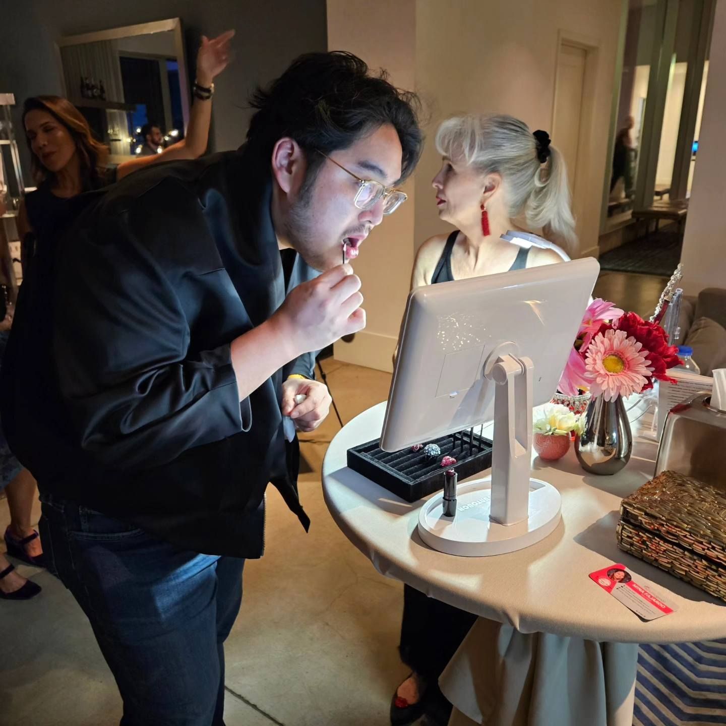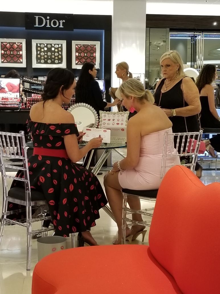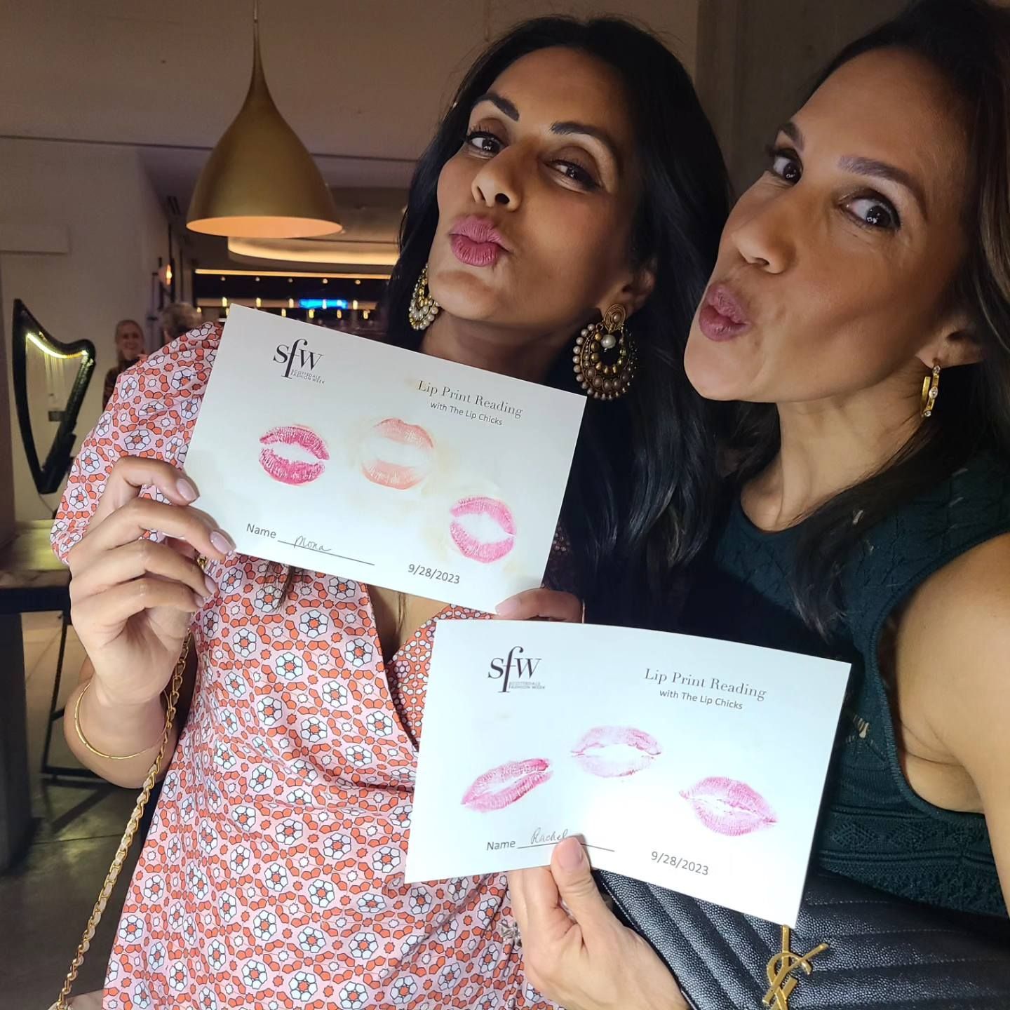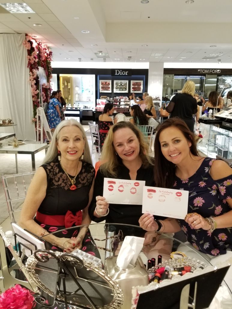 Please meet The Lip Chicks, a team of 2 up to 5 professional Certified Lipsologists who read Lip Prints. Together the Lip Chicks Team, which consists of a Lipstick Wrangler and one to four Lip Print Readers can read the lip prints of up to 100 guests an hour at large events. They have been trained to do affirmative, inspiring and entertaining readings in under 4 minutes and are they are the perfect eye-catching attraction for any large group event looking for something unique. Lip Print Reading is a form of physiognomy (fizz-ee-AWN-oh-mee), which is any method by which we look at the outer person to understand the inner person, and a part of the person to understand the whole person. Hand reading, face reading and toe reading are also forms of physiognomy. We can observe some indicators in lips by looking at them, but the best approach is to make a lip print, as most of the indicators can only be seen this way. This is why we call it lip print reading and not lip reading. When you think about it, we are all amateur physiognomists. Humans have been reading each other’s body language and facial expressions for as long as humankind has existed. Whether it comes from curiosity, from caring about another or as a means of survival, we look for clues to a person’s intention, mental and emotional state, and health by looking at them. Physiognomy is simply a more specialized way of observing the messages we are all transmitting to the world around us through our expressions and movement.
