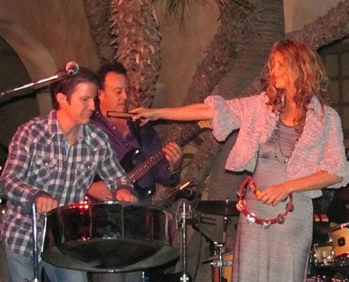 Sugahbeat is refreshingly different. Seamlessly blending world rhythms with contemporary beats, Reggae with Samba, Pop with Soca (West Indian for “Soul Calypso”), Latin with R&B, until the lines are blurred between them all, creating a distinctive, proprietary sound. The “cover” songs that are played by Sugahbeat have been converted & arranged to suit their style. The advantage to this is that while those songs are instantly recognizable to the audience, they may be presented with a creative twist, and it’s unlikely a listener has heard them arranged like this before! A live band is not an iPod, after all, and much of any group’s performance is predicated on reading the crowd and choosing appropriate songs for the mood…if a crowd wants to dance, the selections are upbeat, if guests are eating dinner the material may be more sophisticated and subdued. Regardless of the venue or event, you’re sure to get a festive, fun, and entertaining show!