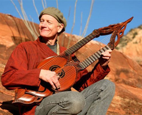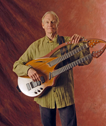 Master of the stringed instrument, William Eaton designs and builds the instruments he uses in his recordings and performances. Expanding the basic guitar, Eaton has added a harp and open bass strings to make a harp guitar and koto harp guitar, extra strings for the 26-string guitar. His o’ele’n strings was inspired by a Victorian-era armoire and has two sets of strings on separate necks with scalloped fretboards resulting in a sound reminiscent of the Indian sitar. Whether alone or with his band, William Eaton continues to bring his unique style, skill, and dedication to instrumental music.