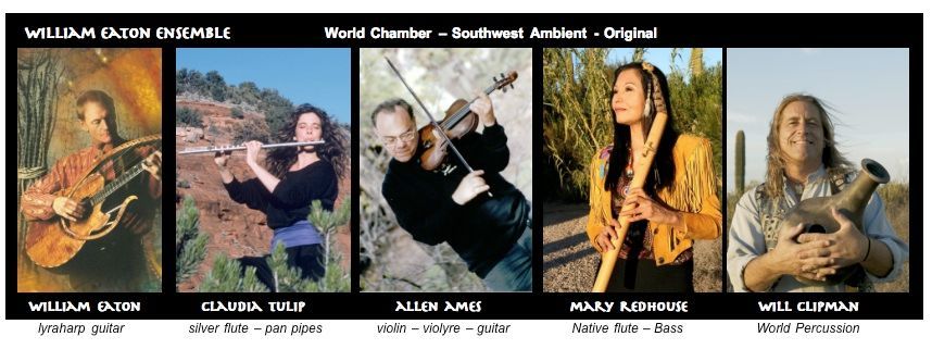 William Eaton has performed and recorded as a soloist, with Native American Flutist R. Carlos Nakai, percussionist Will Clipman, Tibetan flutist Nawang Khechog with the Nouveau West Chamber Orchestra, the Nebraska Chamber Orchestra, and with ensembles he has formed, including musicians: Clipman, Claudia Tulip, Allen Ames, Mary Redhouse, Edgar Meyer, Udi Arouh, Arvel Bird, Robert Tree Cody, Rachel Harris, Keith Johnson, Vusi Shibambo, Fitzhugh Jenkins, Zirque Bonner, and the Monks of the Tibetan Drepung Loseling Monastery. As a soloist and with the above artists Eaton has completed ten recordings for the Canyon Records label.